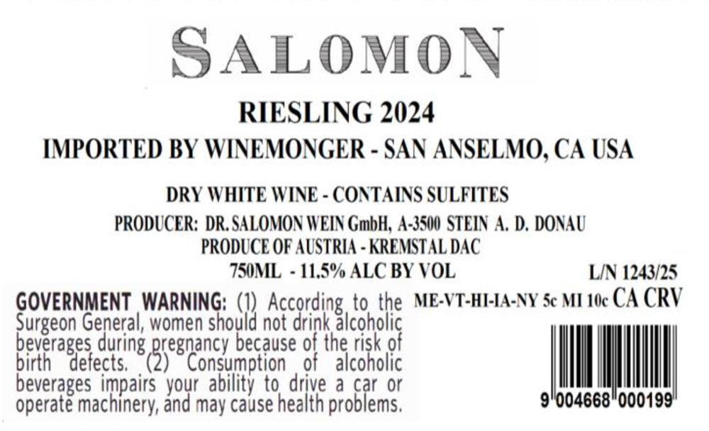 A versatile and eminently drinkable Riesling from a mix of terraced estate vineyard sites. Showcasing Salomon's mastery of wines that will not only drink well now but ages incredibly well. Fresh stone fruits, a hint of mango, delicate notes of tangerines in the background, and a mineral touch. Juicy, elegant, fine,