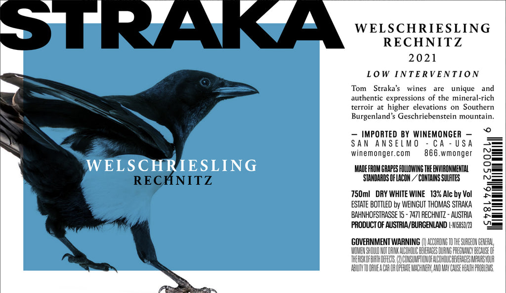 Organic. 85 year old Hungarian clone Welschriesling. Manual harvest. Spontaneous fermentation and aged in stainless. Fined with clay (bentonite) and unfiltered. Minimal sulfur at bottling. Fresh acidity. Multi-layered, mineral-driven, delicate nuances of yellow apples and herbs.