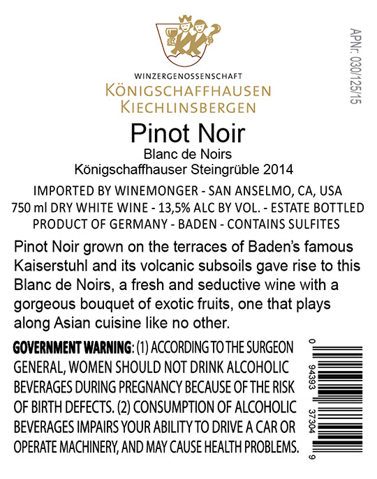 A still white wine made from Pinot Noir grown in the volcanic soils of the famous Kaiserstuhl in the south of Baden. Fermented in stainless steel and aged on the fine lees before being bottled with a merely a hint of residual sugar. Wonderful acidity and a super fun Blanc de Noirs!