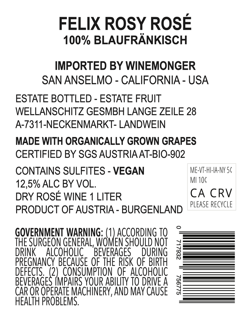 Our first liter Rose. Made for us by Stefan Wellanschitz (of Kolfok fame) from his family estate. Cool site Blaufrankisch with a splash of Rotburger grown on soils of clay and basalt imparts a wonderful minerality. Whole cluster press with 24 hours skin contact gives it a beautiful color. Everything about this wine speaks to tradition and heritage: from the family vineyards to the used large 1500-3000 liter barrels made by a local cooper from trees in the Waldviertal used vintage after vintage. Only native yeasts are used, no fining and minimal amounts of sulphur. The Rosy Rose is intended for springtime delight, easy drinking deliciousness with family and friends.