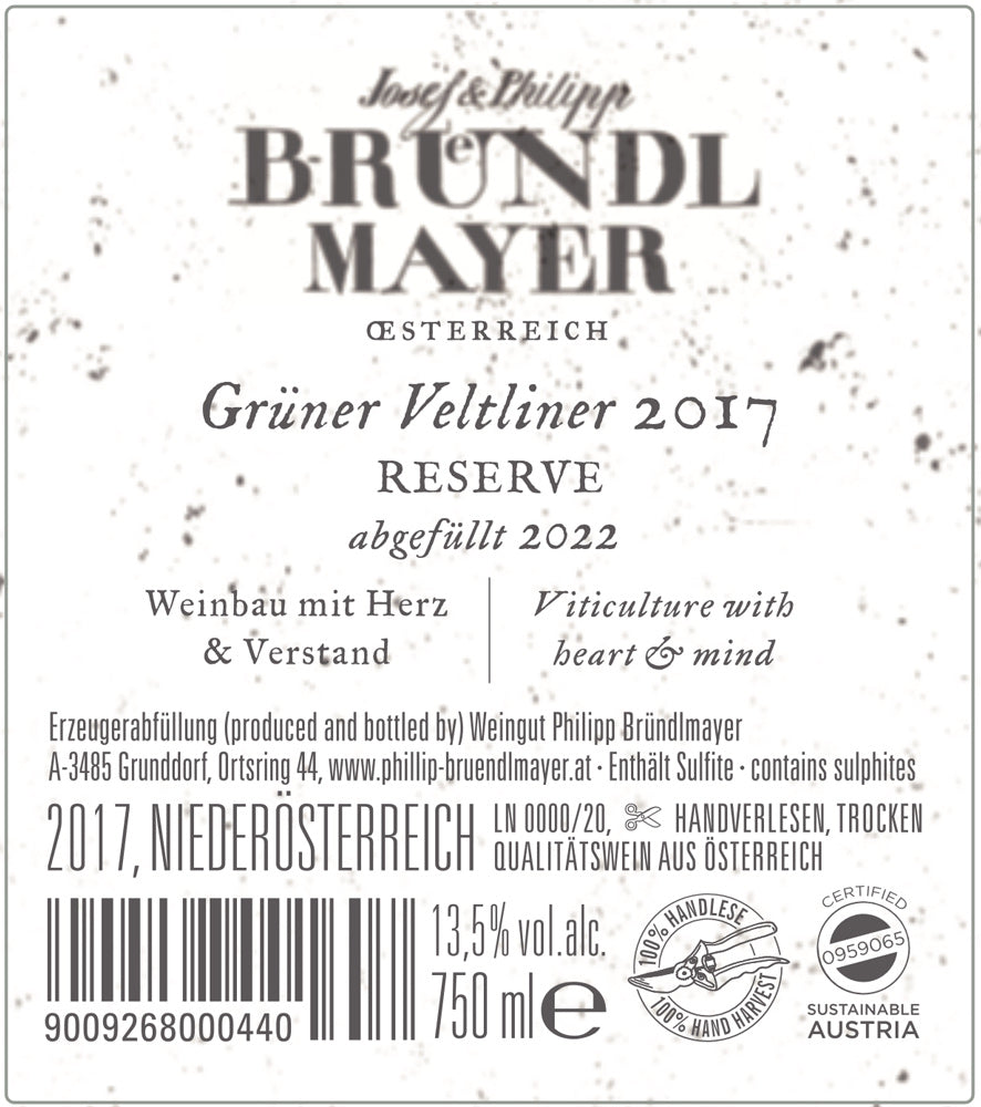Philipp Brundlmayer Gruner Veltliner Reserve 2017