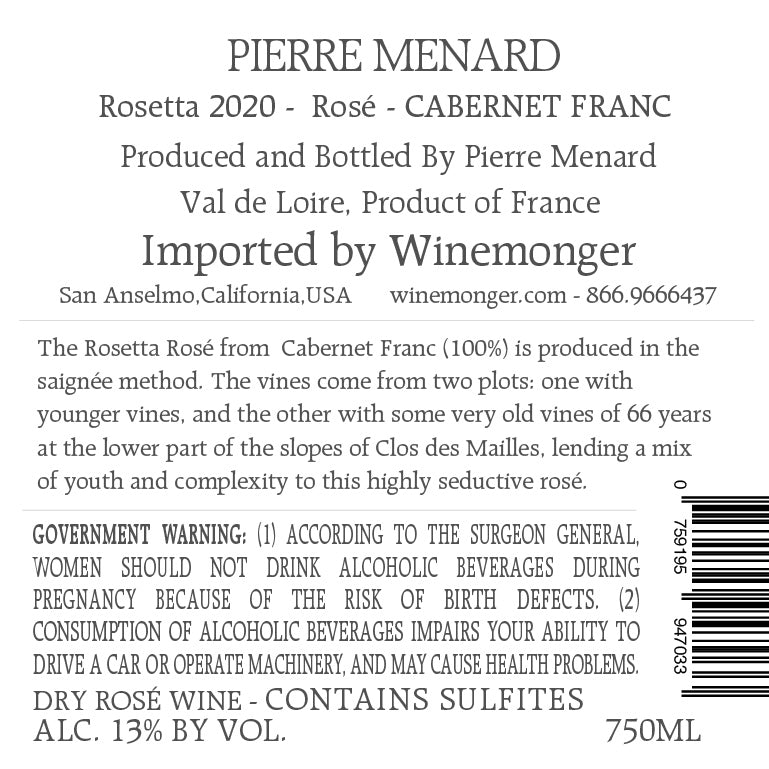 Cabernet Franc blend. A singular rose, vinous and with great structure, light color, and an expressive nose of red fruit and spice. Works wonderfully with summer dishes, a great aperitif, or food wine. As always Pierre uses native yeasts and this delicious rose spends one month in barrel before bottling.