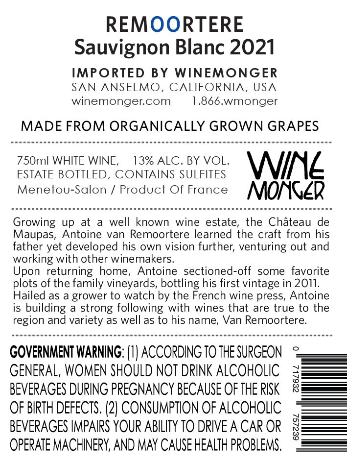 Joseph Van Remoortere worked at wineries around the world before returning home to the Loire to work with his father. In 2011 he converted their 4 hectares to organic farming. This is 100% Sauvignon Blanc from Menetou Salon where the vineyards are compounds of calcareous sediments of Kimmeridgian soil, clay-limestone slopes. There is an emphasis on meticulous farming, hand harvesting and fermentation on native yeasts with minimal sulfur used. The result is an expression of pure terroir with wonderful acidity and focus.